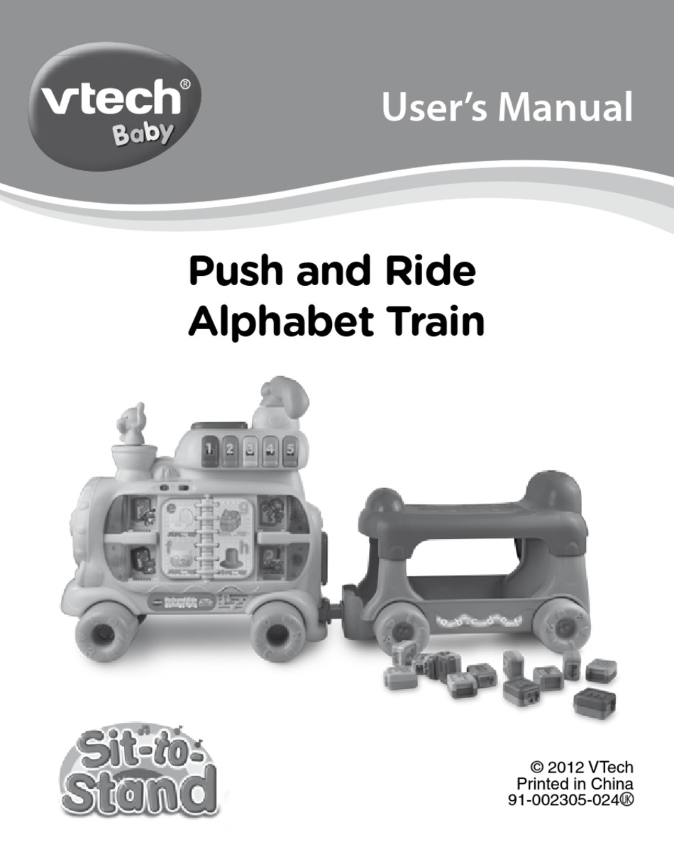 . Hop aboard the Sit-to-Stand Ultimate Alphabet Train™! This train is designed to grow with your child and can be used for floor play or as a ride-on that also transforms into a push walker 4-in-1 train, cart and activity panel takes kids from floor play to walker to ride-on to pull cart ; Removable panel enhances floor play with 10 learning buttons that teach numbers, colors and locations and encourages role-play driving ; 16 activities include 13 double-sided interactive alphabet blocks, travel book, turning gear and popping beads
